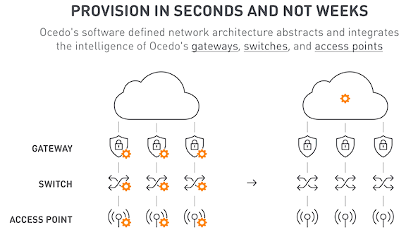 Als SDN-Pionier hat Ocedo ein Produktportfolio für SDN-basierte Zweigstellenlösungen mit sicheren Gateways, drahtlosen Access Points und Switches sowie integriertem Cloud-Management-System entwickelt. Letzteres ermöglicht eine Zero-Touch-Bereitstellung und die zentralisierte Kontrolle von Remote-Geräten sowie Netzwerk-Diensten