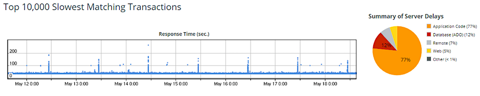 Abb. 1: SteelCentral AppInternals Search Transactions 10000 matching (Bildquelle: Riverbed)