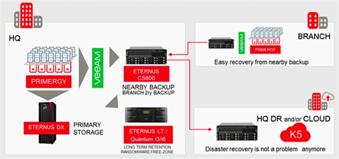 Abb. 1: Fujitsu CS800 & Veeam Software; Backup für Disaster Recovery Szenario (Bildquelle: Fujitsu / Veeam Whitepaper)