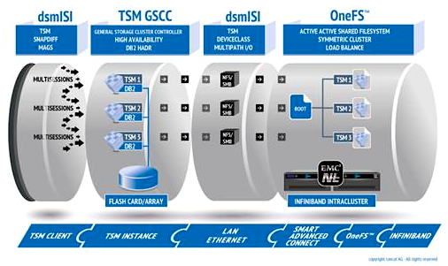 Abb.1: Netzwerkarchitektur des Tivoli Storage Managers mit GSCC, dsmISI und Isilon OneFS von EMC, Bildquelle Concat AG, 2015