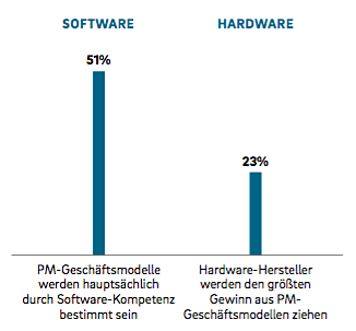 Auszug: "Weiterhin ist unklar, wie schnell, in welchem Umfang und auf welchen internen bzw. externen Speichermedien Kunden bereit sein werden, die notwendigen Zugriffsrechte zu ihren Daten zu erteilen. Allerdings erwarten knapp 50% der befragten Unternehmen einen Durchbruch von PM bereits bis 2020. Auch hierin drückt sich klar der durch schnelle Zyklen und Disruption gekennzeichnete "digitale Charakter" des PM-Konzepts aus.“