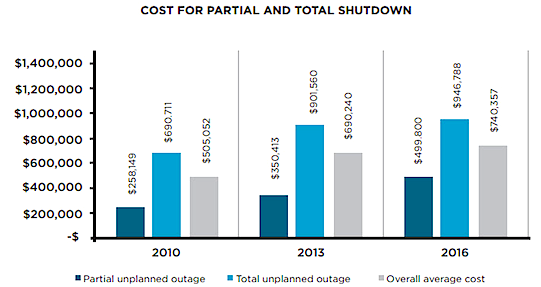 Abb. 1: Bildquelle Ponemon Institute / Cost for Partial and total Shutdown (see: Cost of DataCenter Outages Report, 2016)