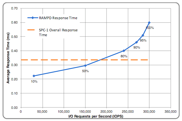 Das System belegt mit $0,22/IOPS danach den ersten Platz in der Kategorie Preis-Leistungs-Verhältnis. Der Benchmark lieferte bei voller Auslastung eine Antwortzeit von 0,59 Millisekunden und über 300.000 IOPS. Die Testergebnisse wurden vom SPC am 8. Juni 2017 veröffentlicht und sind auf dieser SPC-Website abrufbar.