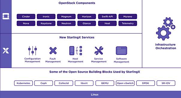 Diensteverwaltung: StarlingX bietet Lebenszyklus-Management für Dienste durch Hoch-verfügbarkeit über Redundanzmodelle wie N+M oder N über mehrere Knoten hinweg. Der Dienst unterstützt die Verwendung mehrerer Messaging-Pfade zur Vermeidung von Split-Brain-Kommunikationsausfällen sowie aktive und passive Überwachung zur Spezifikation der Auswirkungen eines Diensteausfalls mit einer vollständig datengesteuerten Architektur.