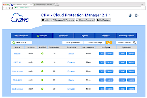 Abb. 1: CPM Cloud Protection Manager 2.1.1 (Bildquelle: N2WS A Veeam Company)