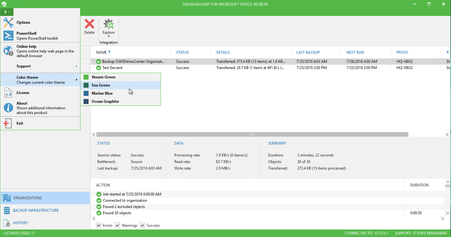 Abb. 1: Veeam Backup for Microsoft Office 365 Version 2, Übersichtsbild (Quelle: Veeam)