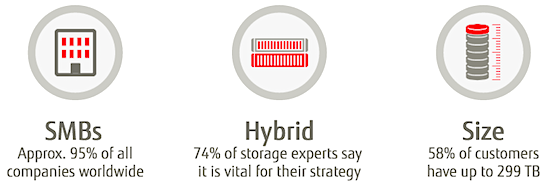 Fujitsu hat die ETERNUS DX S4 Reihe speziell für kleinere Unternehmensgrößen (engl. SMB's) konzipiert. Die neuen Speichersysteme liefern konstante Momentaufnahmen der Daten mit Backup- und Recovery-Funktionen; ferner verfügen sie über integrierte Systemsicherheit gegen den unberechtigten Zugriff auf wichtige Betriebsdaten. Dies soll die Datenverfügbarkeit auf 99,9999 Prozent ausweiten sowie ungeplante Ausfallzeiten von nur unter einer Minute pro Jahr sicherstellen.