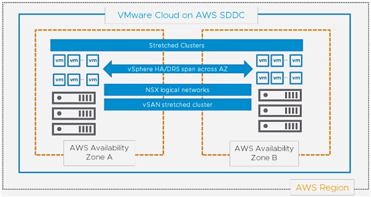 Abb. 1: Stretched Clusters für VMware Cloud on AWS ab sofort verfügbar (Bildquelle: VMware, Emad Younis Blog)