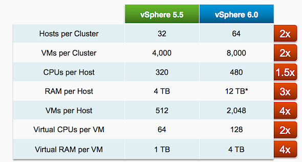 Abb. 3: Vergleich vSphere 5.5 versus vSphere 6.0. Bildquelle VMware, 3. Febr. 2015