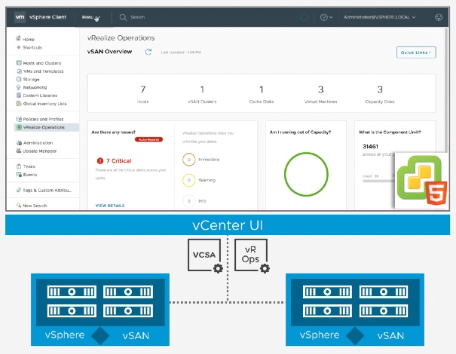 VMware vSphere HTML5-Client-Support bietet vSAN-Administratoren ein einheitliches, intuitives Management mit dem HTML5-basierten vSphere Client, der neue Funktionen und optimierte Workflows für den vSAN-Betrieb umfasst.