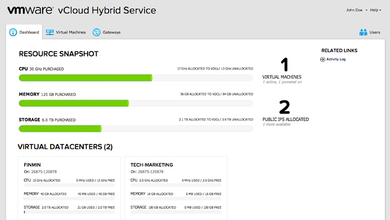 - Redundanter VM Service – VMware bietet Service Level Agreements für die Verfügbarkeit von VMs, gesichert durch eine redundante Serverinfrastruktur unter Einsatz von VMware vSphere vMotion. Dies soll die Performance und Verfügbarkeit von Kunden-Applikationen maximieren. Bei Server-Engpässen oder technischen Störungen wird eine automatische Live-Migration zu anderen Knotenpunkten ausgeführt.