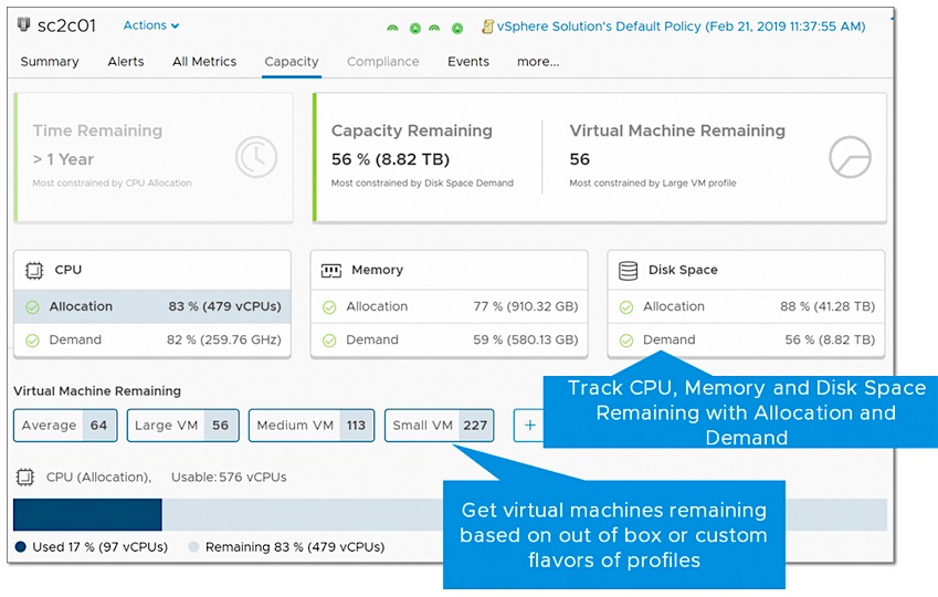 Abb. 1: Efficient Capacity Management (Bildquelle: VMware What’s New in vRealize Operations 7.5)