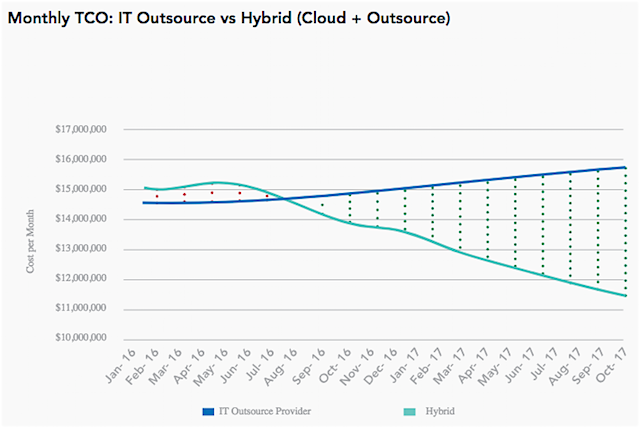 Abb. 1: 18-Month TCO for an enterprise manufacturing and software company highlighting growth to a 25% savings (Bildquelle: CTP Doppler Survey [1])