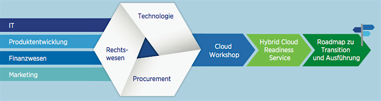 Während dieses dreitägigen interaktiven und interdisziplinären Workshops gewinnen Kunden einen umfassenden Überblick über die technischen, rechtlichen und geschäftlichen Aspekte der Hybrid-Cloud-Umgebung. Ziel ist dabei außerdem, die Grenzen zwischen den einzelnen Geschäftsbereichen im Unternehmen zu überwinden. So können alle Beteiligten ein gemeinsames Verständnis für die wesentlichen Herausforderungen, vor denen das Unternehmen steht, entwickeln.
