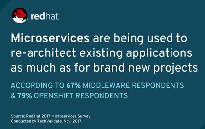 Zum Hintergrund: Red Hat hat im letzten Herbst eine umfassende Studie zu Microservices in Auftrag gegeben, die von TechValidate im Nov. 2017 durchgeführt wurde und jetzt ausgewertet ist. Beteiligt haben sich an der Befragung Anwender von Red Hat JBoss Middleware und Red Hat OpenShift (1). Ein zentrales Untersuchungsergebnis dabei ist, dass Microservices sowohl für die Modernisierung vorhandener, als auch für die Entwicklung neuer Applikationen verwendet werden; dies bestätigten 69 Prozent der Befragten. Die große Mehrheit der Red Hat Kunden setzt im Microservices-Umfeld danach auf Multi-Runtime-, Multi-Technologie- und Multi-Framework-Umgebungen. So nutzen etwa 87 Prozent mehrere Technologien für die Entwicklung von Microservices.